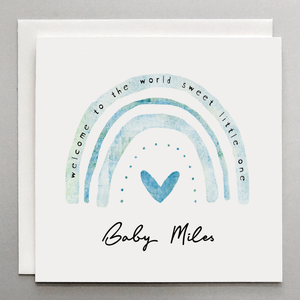 Welcome To The World Sweet Little One, Blue Rainbow - Personalized Baby Boy Card