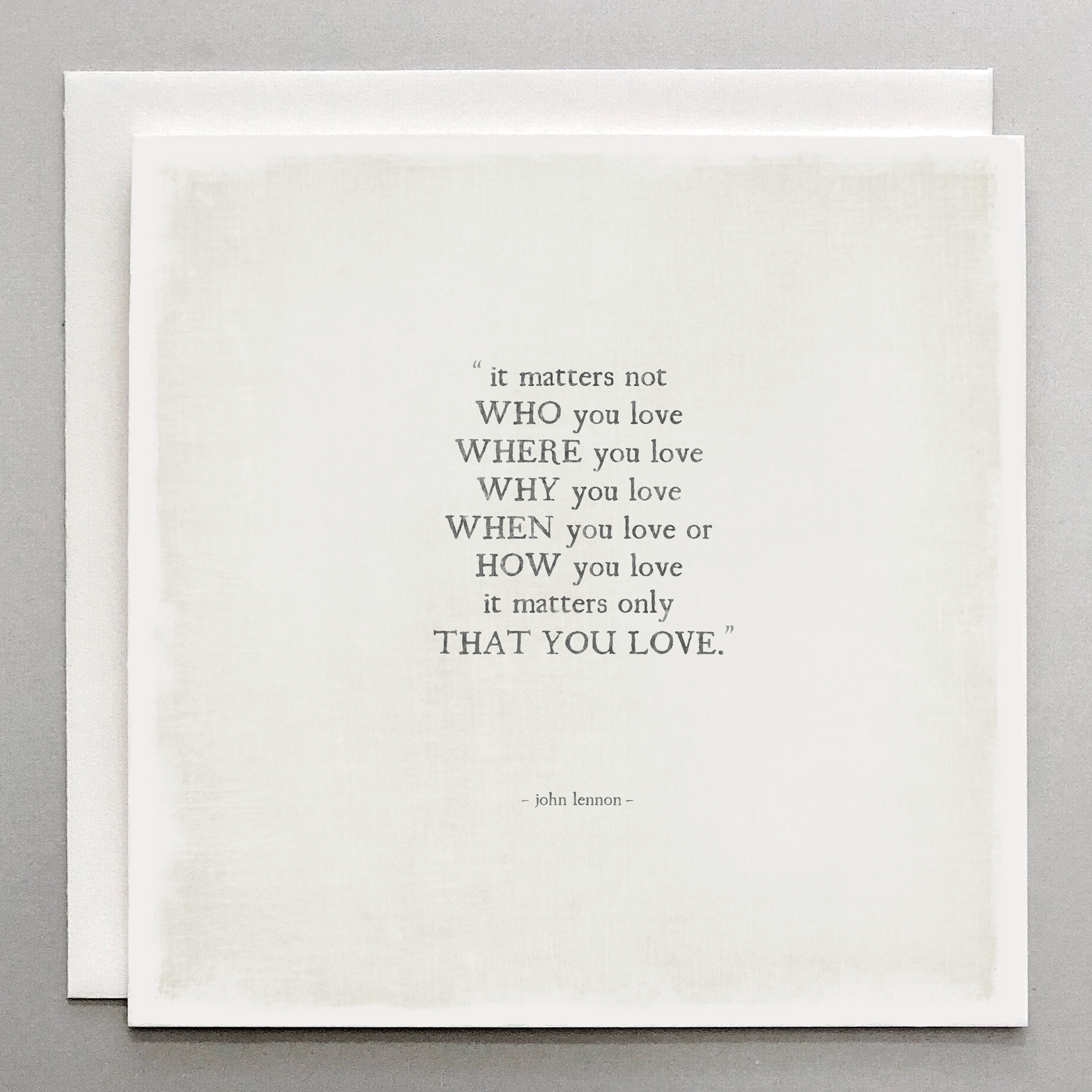 Inspirational Card - 'it matters not who you love, where you love, why you love, when you love or how you love. it matters only that you love.' - john lennon