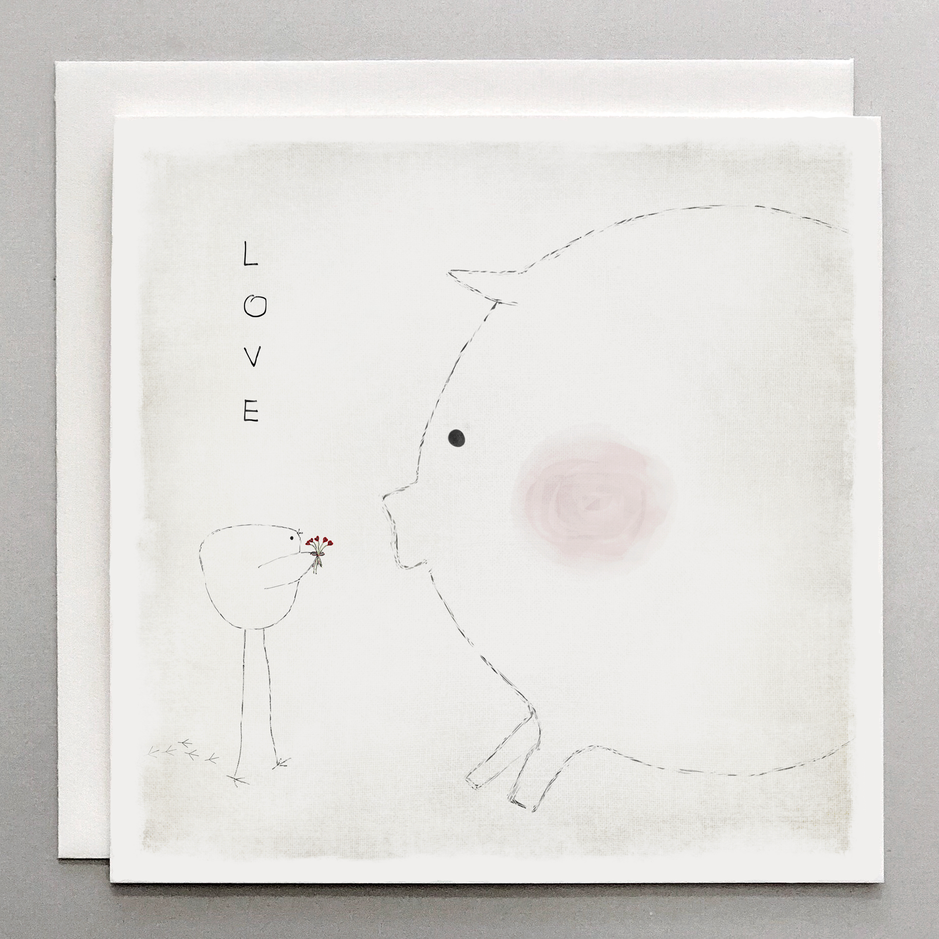 A loving bird holding a bouquet of flowers for the blushing pig. Perfect for saying 'love you' or 'appreciate you' or 'just because'.